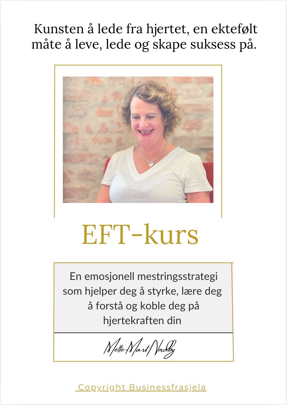 EFT er et følelsesforløsende verktøy som hjelper deg å roe nervesystemet, frigjøre indre stress og bryte ut av overveldelse, tvil, motstand og frustrasjon.